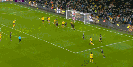 不过要注意,在比分为2-1的时候,狼队同样打出了和1-0时类似的压迫和强攻,不仅让曼联出现了后场失误和反制无力的情况: